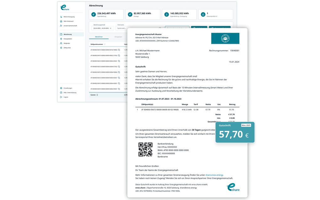 Die Abrechnung Ihrer Energiegemeinschaft ist eine Herausforderung? Mit enox.share wird es einfach: